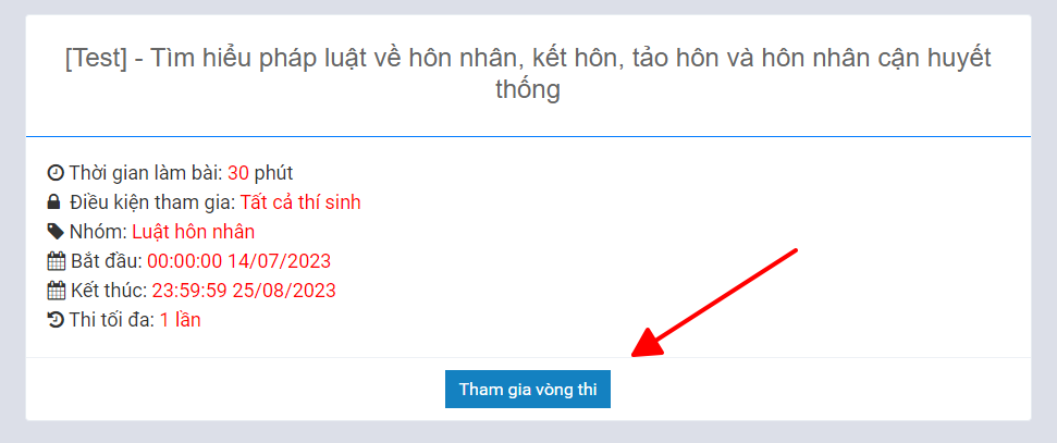 Truy cập trang chủ, lựa chọn cuộc thi để tham gia.